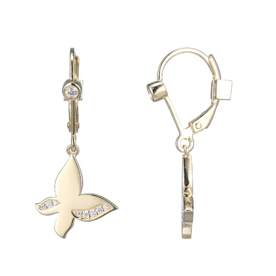 SS ELLE " MOTIF" GOLD PLATED CZ BUTTERFLY DROP EARRING.