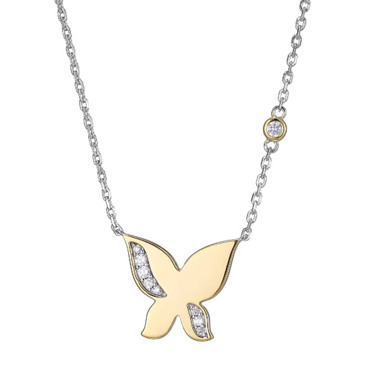 SS ELLE " MOTIF" GOLD PLATED CZ BUTTERFLY PENDANT 17" + 3" DIAMOND CUT CABLE CHAIN.
