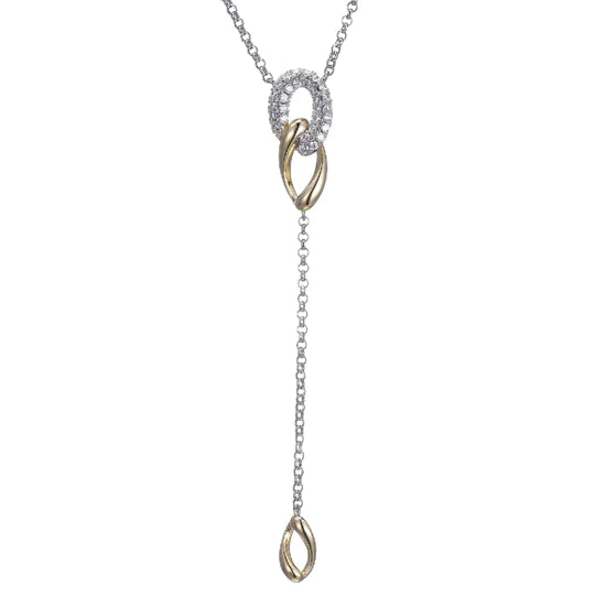 SS ELLE " EBUILLIENCE" RHODIUM AND YELLOW GOLD CZ LINK Y NECKLACE 18" + 2" EXTENSION ROLO CHAIN.