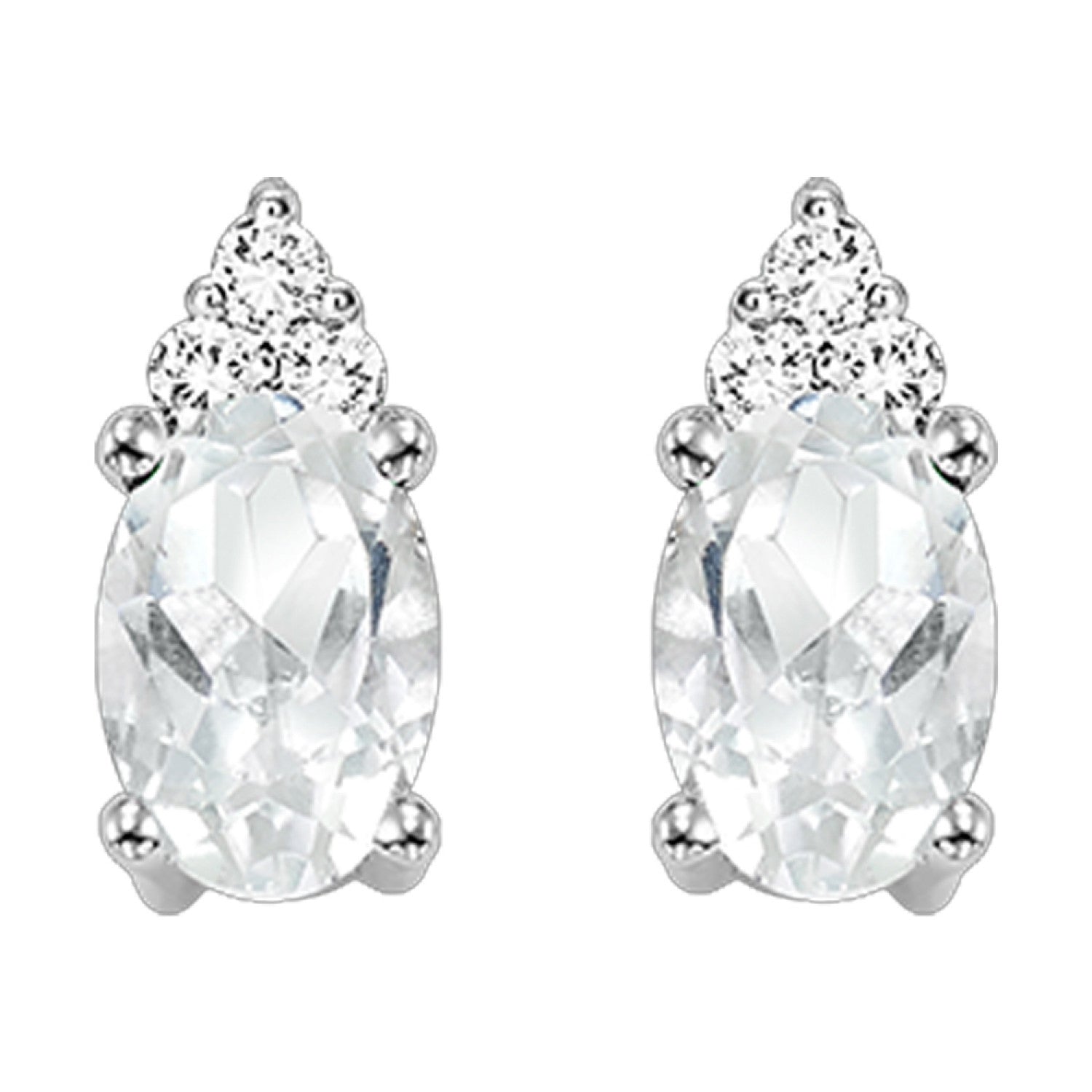 A 1/2 carat white topaz shines in these 10K white gold earrings, enhanced by 1/25 carat of diamonds—clear and versatile.
