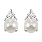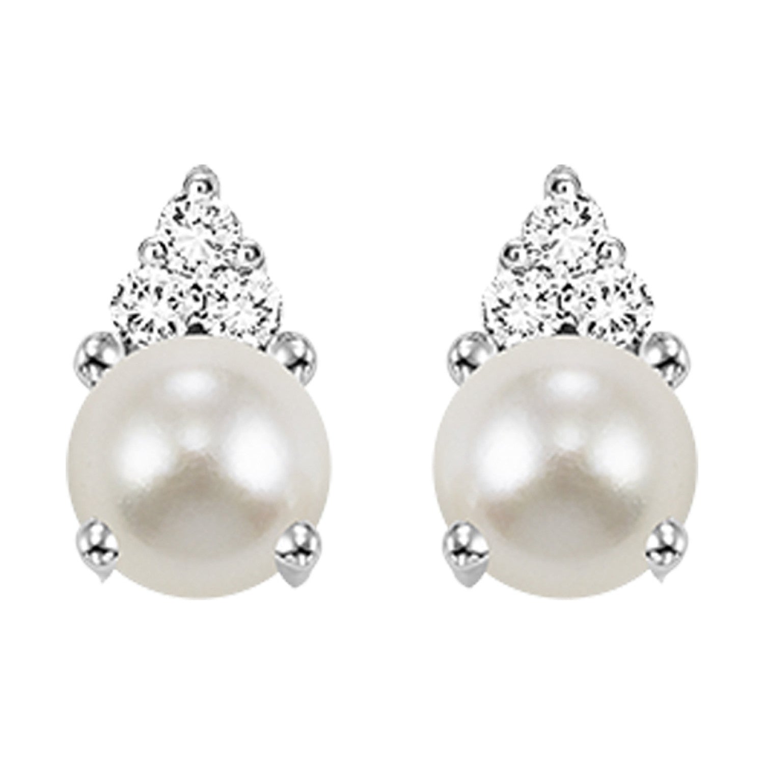 These 10K white gold earrings feature 7/8 carat pearls complemented by 1/25 carat of diamonds—soft luster with refined sparkle.