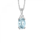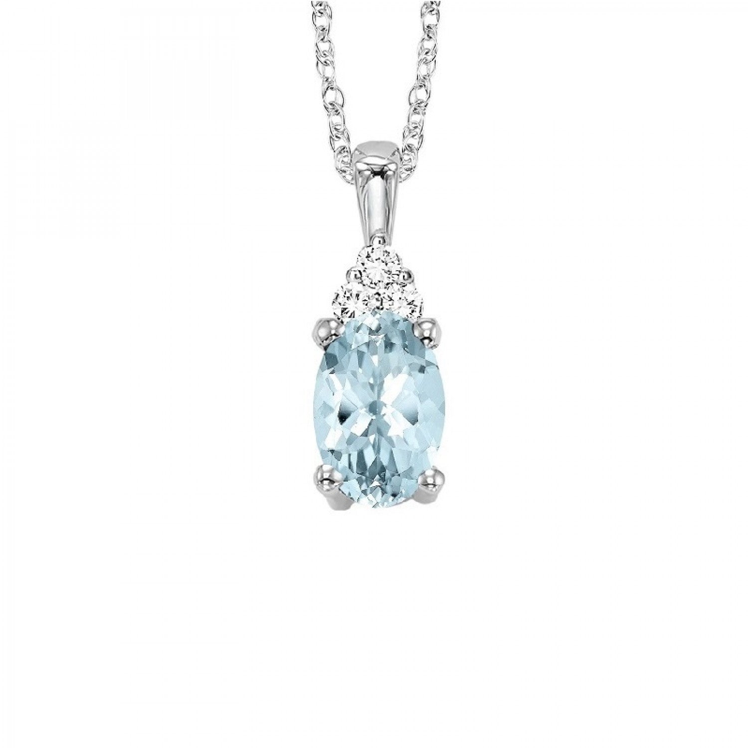 This pendant features a 3/8 carat aquamarine accented by 1/50 carat of diamonds in 10K white gold—a light, airy design with gentle sparkle.