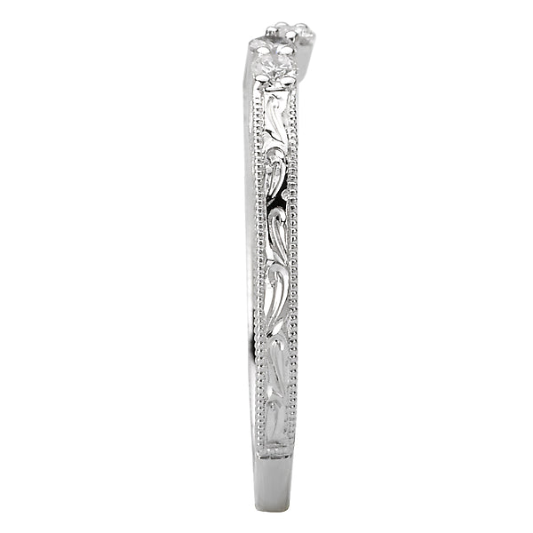 Curved Matching Diamond Wedding Band in 14kt White Gold with Milgrain and Engraved Detail. (D.1/5 carat total weight)