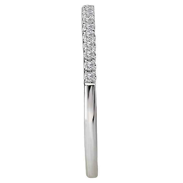 This matching wedding band is lined with 21 sparkling round diamonds all set in 14kt white gold. (D 1/8 carat total weight)