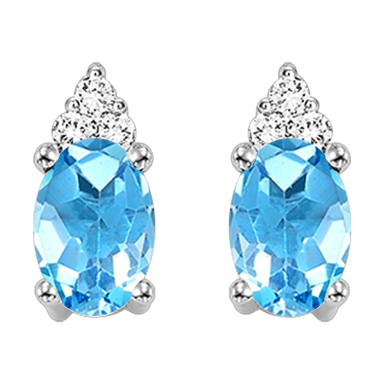 10Kt White Gold Diamond 1/20Ctw & Blue Topaz 1/2Ctw Earring