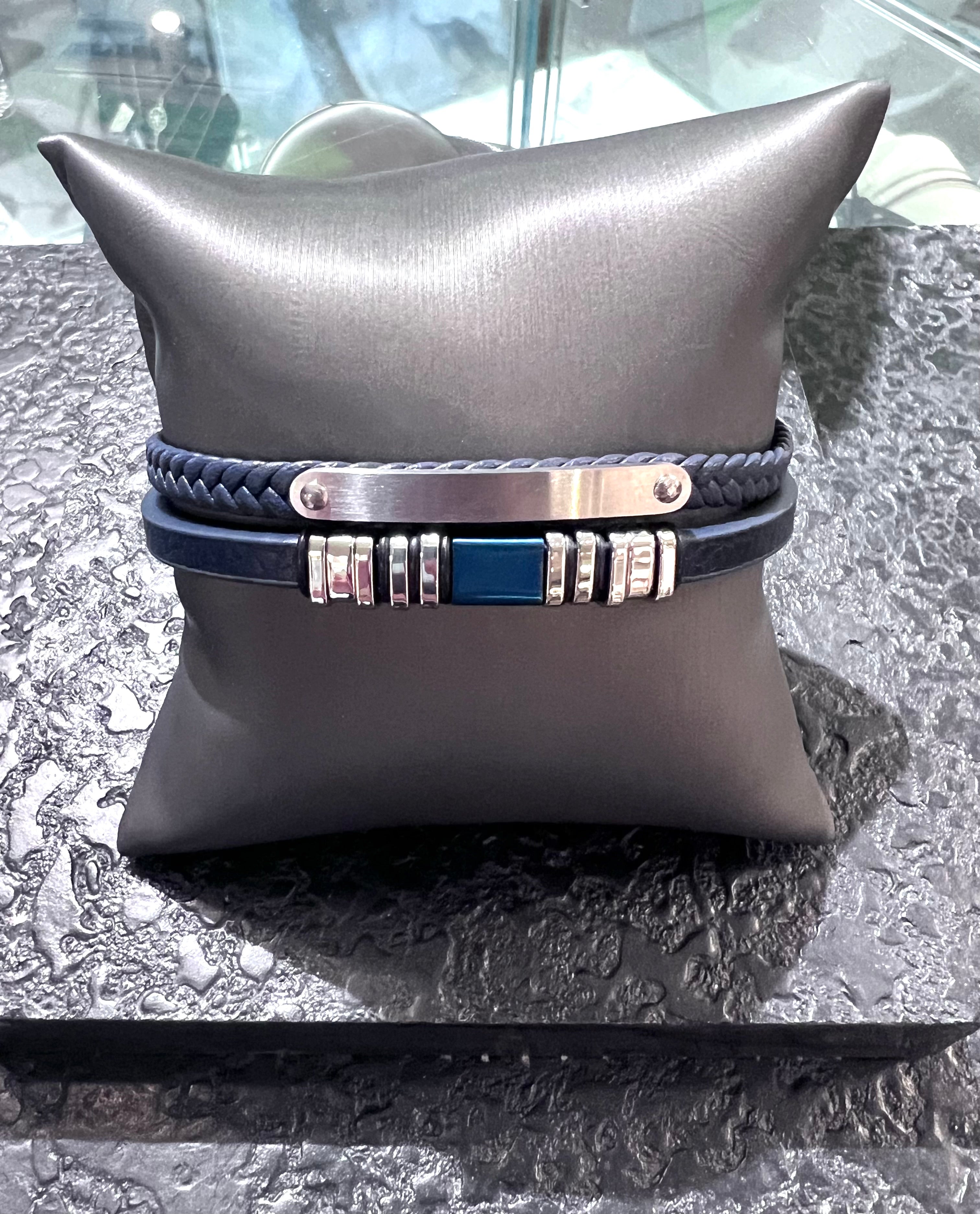 Navy Leather Chord Stainless Steel Bar